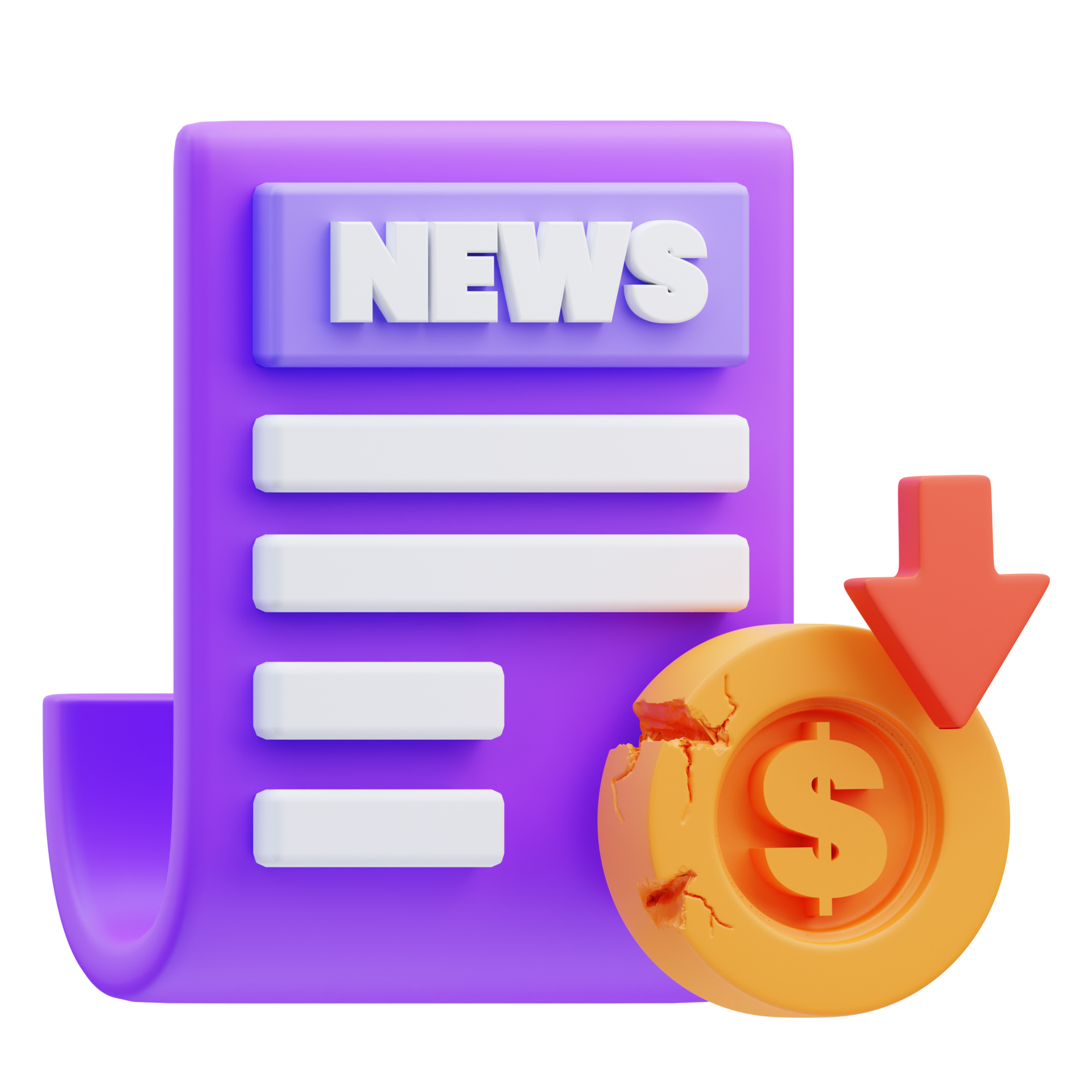 3d-render-illustration-of-news-paper-icon-about-economic-recession-financial-...