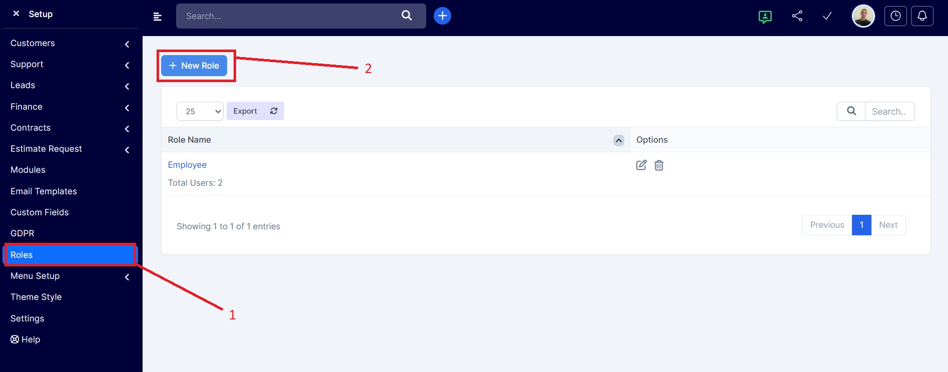 V horní části stránky klikněte na tlačítko Nová role, abyste přidali novou roli pro zaměstnance.