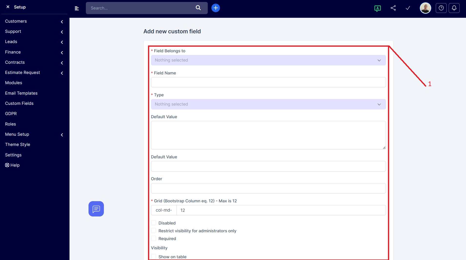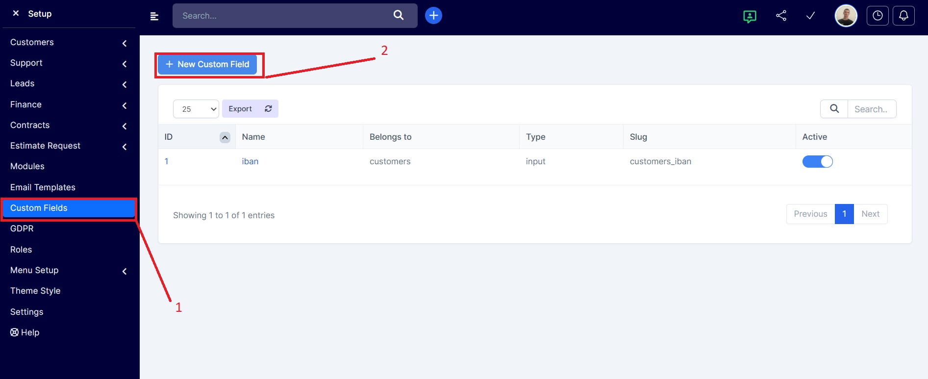 Nastavení → Konfigurace → Vlastní pole