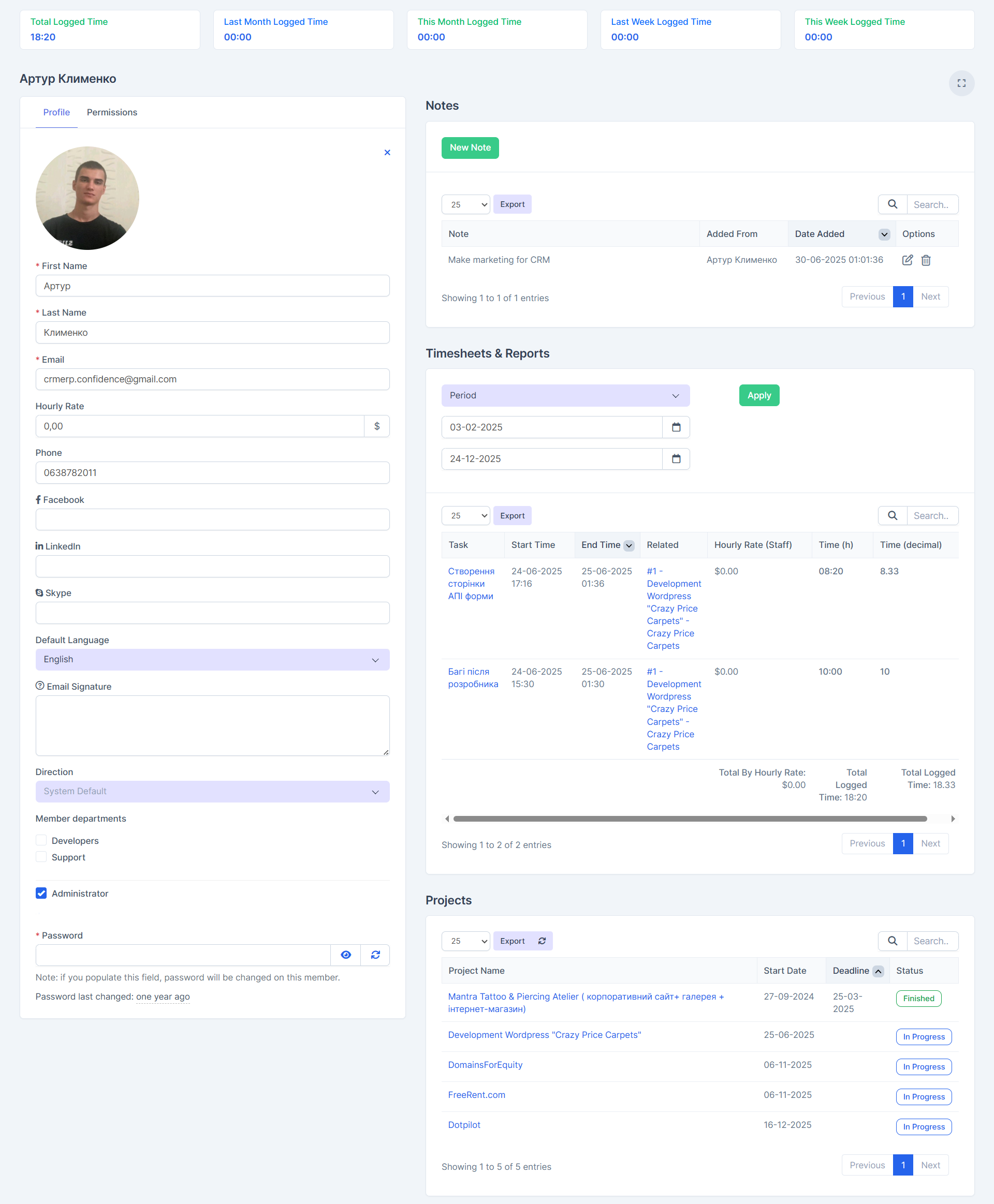 This Month Logged Time – počet odpracovaných hodin za aktuální měsíc.